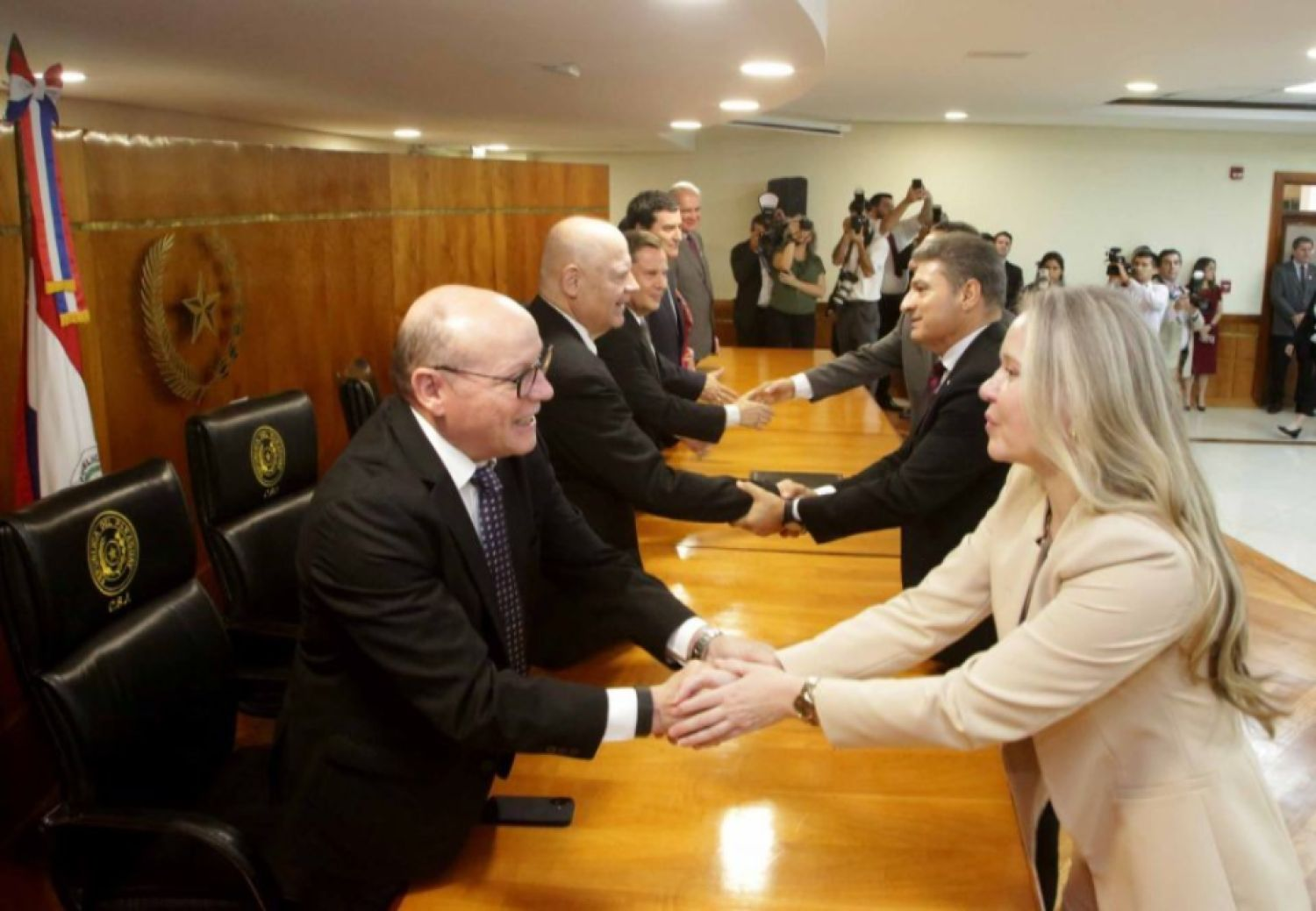 En el Salón Auditorio “Dra. Serafina Dávalos” del Palacio de Justicia de Asunción, este lunes 9 de marzo, se realizó el acto de juramento de rigor a 8 magistrados, 13 agentes fiscales y 2 defensores públicos. La ceremonia fue encabezada por el presidente de la Corte Suprema de Justicia, doctor Alberto Martínez Simón; el vicepresidente primero, doctor Luis María Benítez Riera; el vicepresidente segundo, doctor Gustavo Santander Dans; y los ministros doctores María Carolina Llanes Ocampos y César Diesel Junghanns. Participó también el fiscal general del Estado, doctor Emiliano Rolón Fernández.